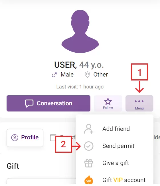 The "Send permit" function means to allow a specific user to view all private albums you have created.
